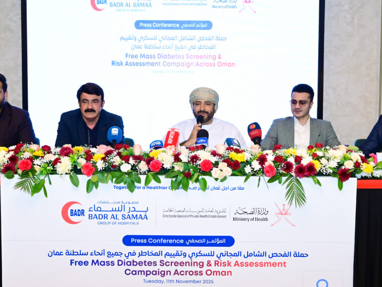 Muscat – More than 20,000 people are expected to take part in a two-day nationwide diabetes screening camp rolled out by Badr Al Samaa Group of Hospitals, in partnership with the Ministry of Health (MoH). The campaign, aligned with World Diabetes Day, will take place on November 14 and 15, 2025, across 112 locations in Oman—including all 14 Badr Al Samaa branches, malls, supermarkets, parks and community spaces.