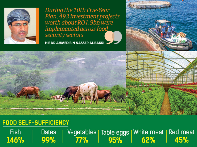 During the 10th Five-Year Plan (2021–2025), 493 investment projects worth about RO1.9bn were implemented across food security sectors. Of these, 399 projects were in agriculture and livestock production, with investments nearing RO806mn. The projects expanded agricultural land by around 50,000 acres, with many already under cultivation.
