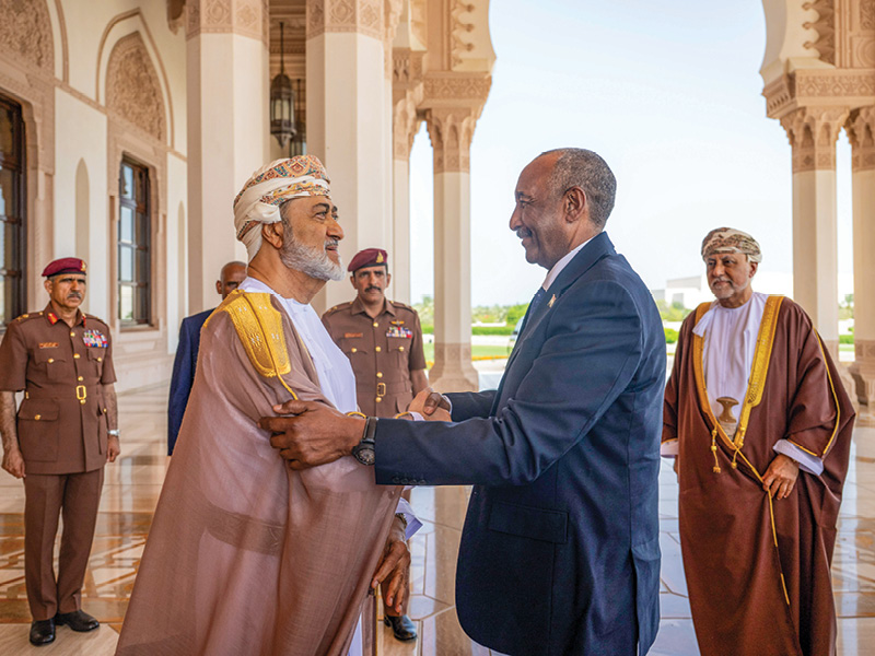 Muscat – His Majesty Sultan Haitham bin Tarik received Gen Abdel Fattah Al Burhan, Chairman of the Transitional Sovereignty Council in the Republic of Sudan, at Al Barakah Palace during the latter’s private visit to the Sultanate of Oman on Tuesday.